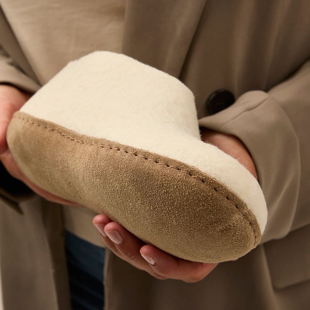 Comfortabele, warme slof van gevilt wol.