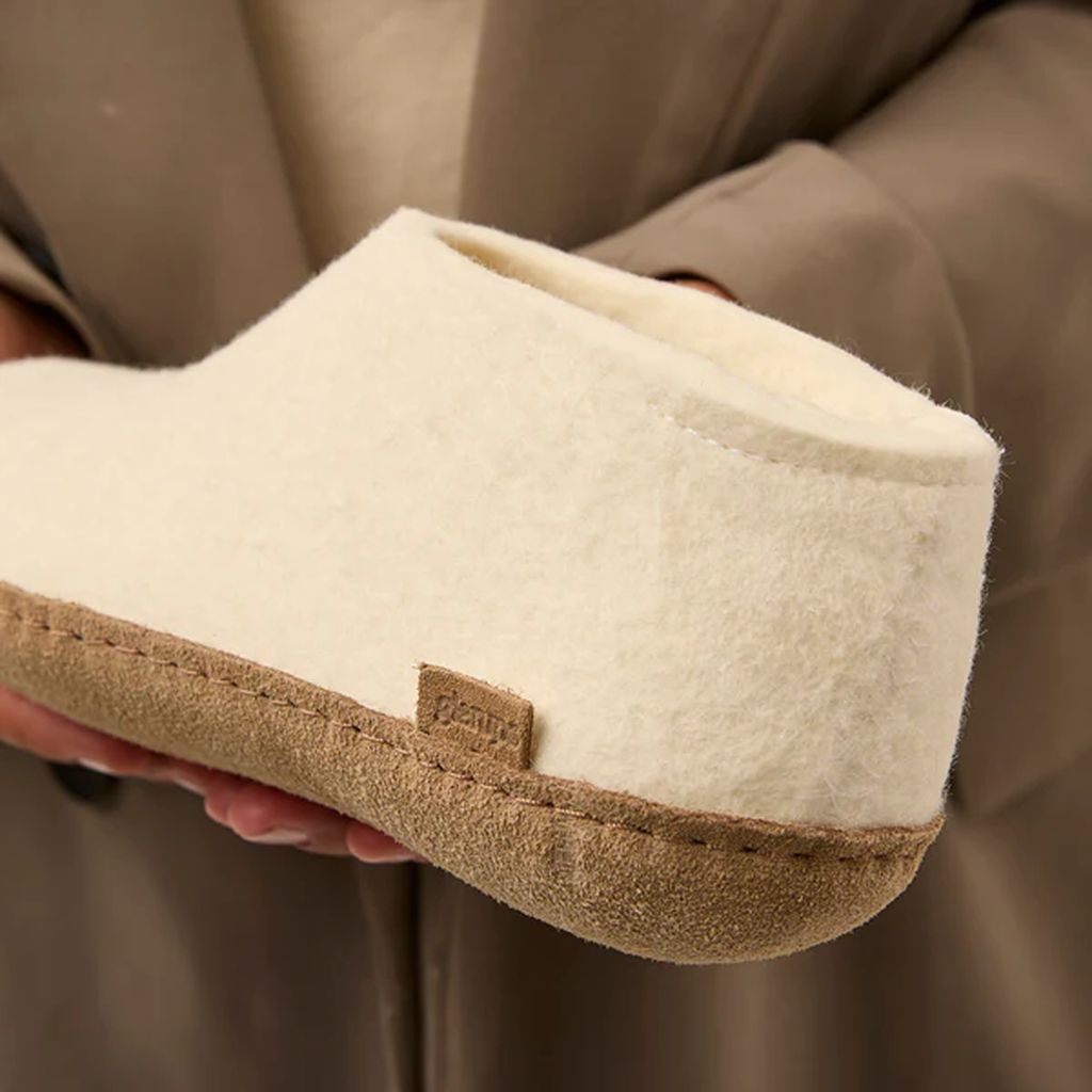Glerups maakt heerlijke warme sloffen van gevilt wol. De zolen zijn gemaakt van plantaardig gelooid kalfsleer. Wol is vochtabsorberend waardoor de voeten lekker warm en droog blijven. De sloffen zijn dus van nature lekker warm en comfortabel. De modellen van Glerups zijn unisex. In het begin kan de gevilte wol nog wat 'werken’ en bestaat de kans dat er plukjes wol loslaten. Dit is een normaal proces en gaat na een paar keer gebruik vanzelf over. De plukjes wol kun je zonder probleem handmatig verwijderen.