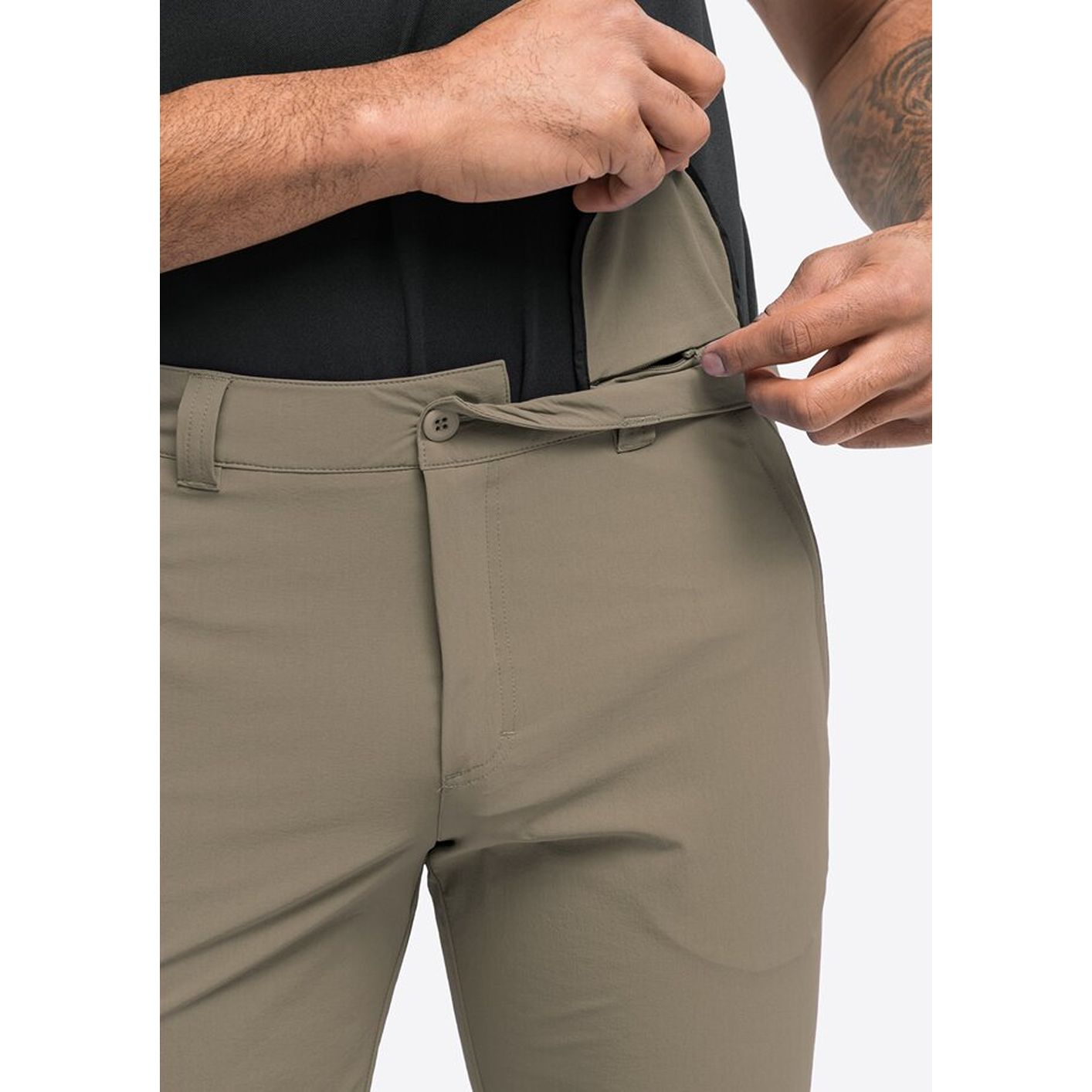 - Vier broekzakken met rits en een verborgen veiligheidszakje met rits