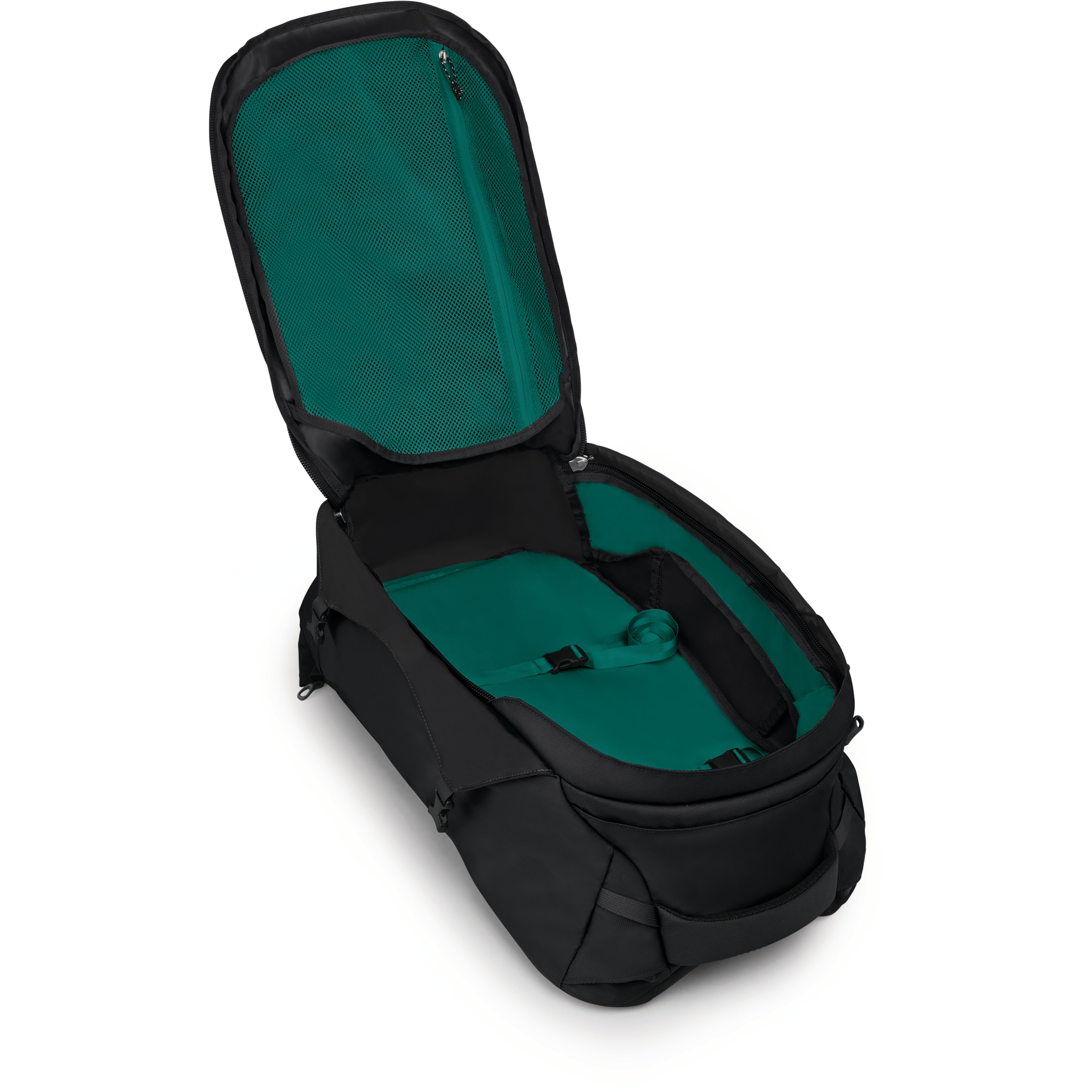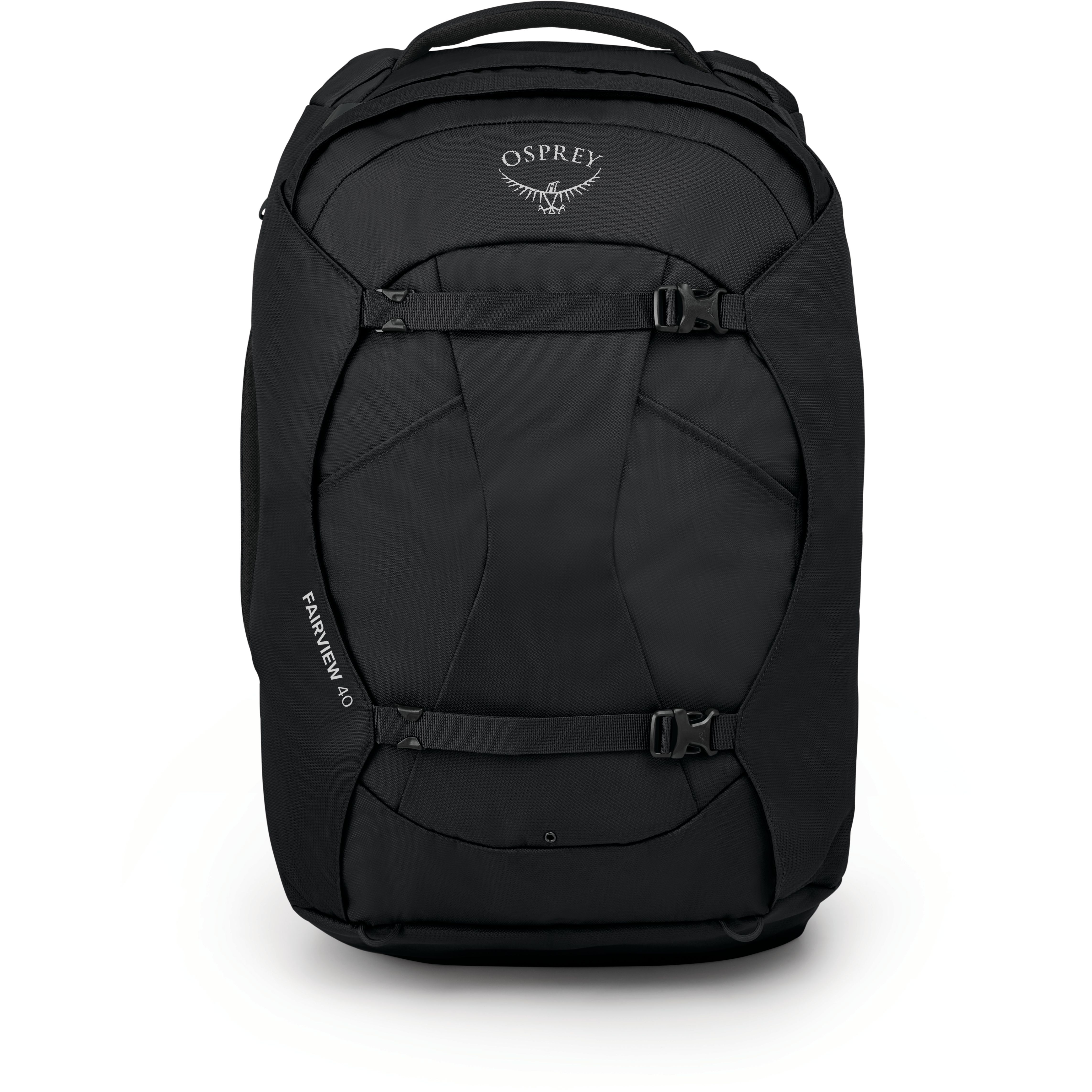 - Twee compressiebanden op de voorkant, geschikt voor bevestiging van een Farpoint of Fairview dagrugzak