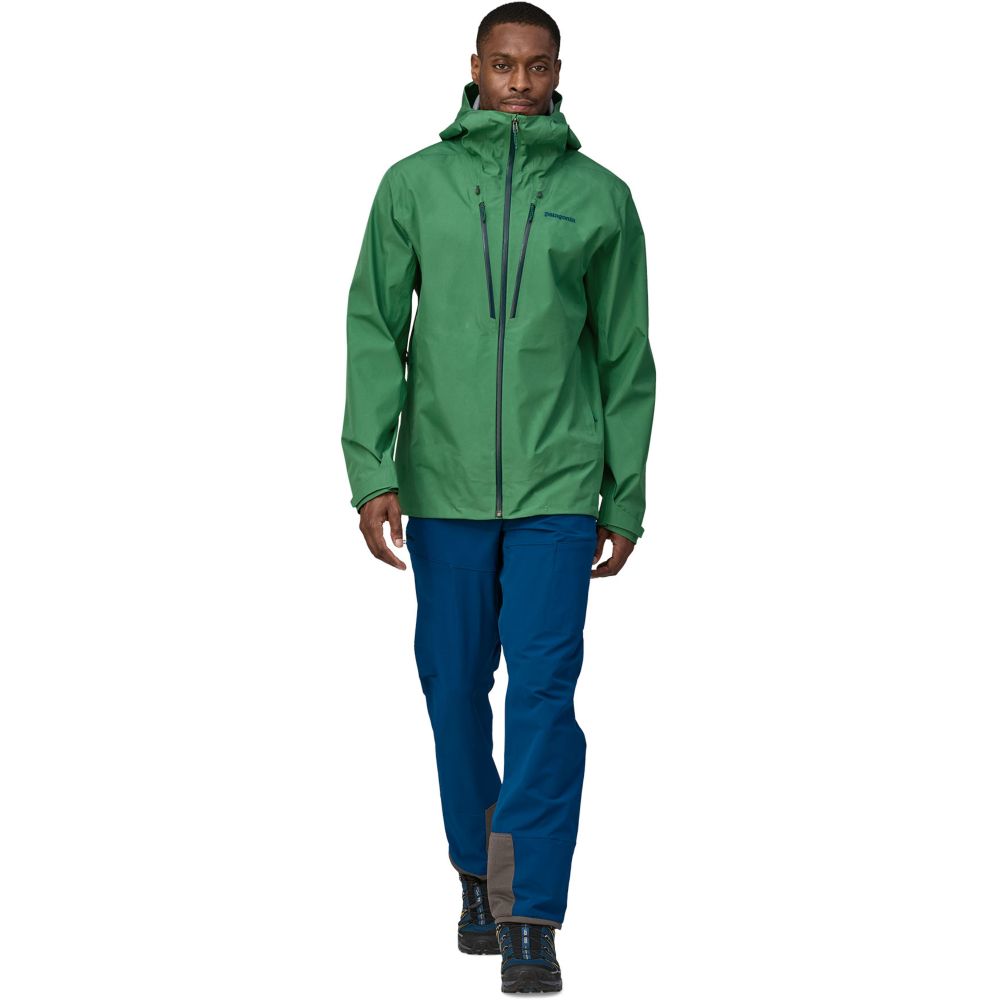 Patagonia heeft de Triolet Jacket vernieuwd. De grootste verandering zit 'm in het Gore-Tex® mebraan: de waterdichte laag in deze jas is helemaal vrij van schadelijke fluorcarbon en bestaat uit 100% gerecycled materiaal. Ook de buitenstof is gemaakt van stevig en volledig gerecycled 75 denier polyester. Verder heeft de Triolet allerlei handige toepassingen, zoals een verstelbare capuchon die groot genoeg is om te gebruiken met een helm. Goed zicht in slecht weer is gegarandeerd door een verstevigde rand aan de voorzijde van de capuchon. De jas heeft twee napoleonzakken met waterbestendige ritsen en twee gevoerde steekzakken. De jaszakken zijn iets hoger geplaatst zodat ze niet in de weg zitten voor een heupband van een rugzak of een klimgordel. Aan de binnenkant zit ook nog een elastische opbergvak. Door de okselritsen heeft de jas extra ventilatiemogelijkheden. De manchetten kunnen strakker aangetrokken worden en ook de zoom aan de onderkant kan door een aantrekkoord strakker gemaakt worden. Daarnaast heeft de jas een RECCO® reflector. Mocht je onverhoopt in een lawine terechtkomen, dan kunnen reddingsdiensten je opsporen.