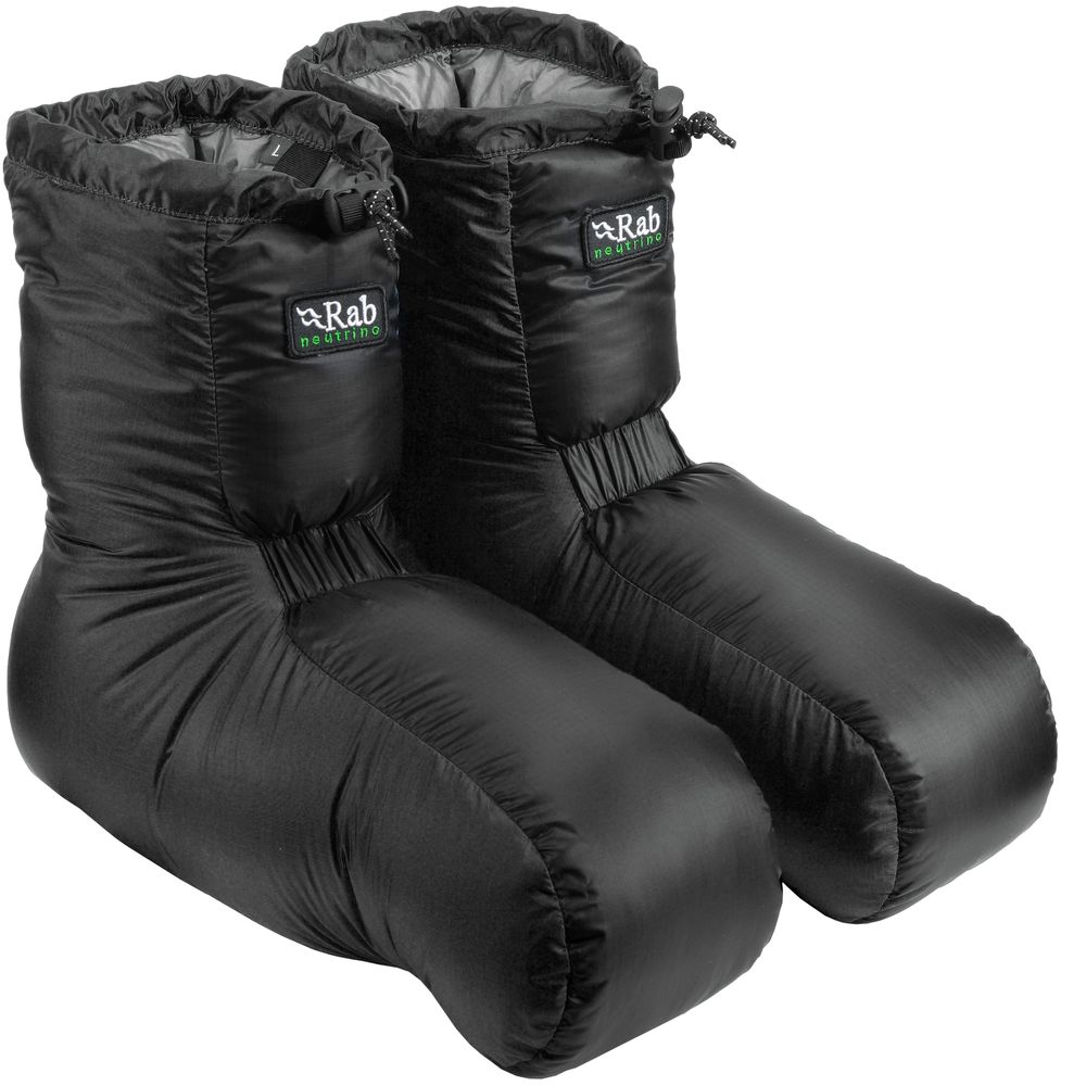 Deze sloffen zijn zeer licht en zijn gevuld met een hoge kwaliteit ganzendons (800fp). De buiten- en binnenstof is van licht, maar sterk Pertex® Quantum, dat zacht aanvoelt. Ze zijn met een hand strakker te maken.