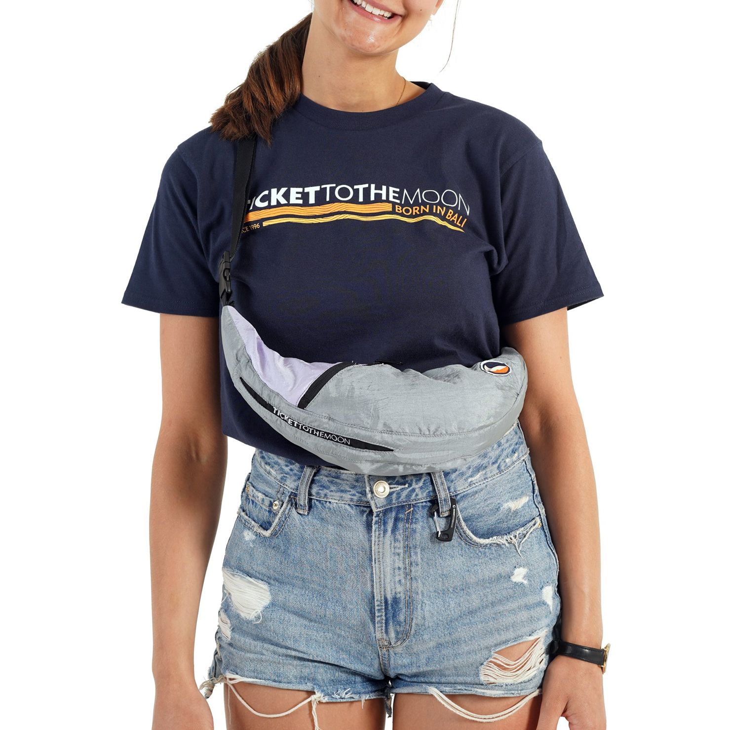 Ticket to the Moon Upcycled Sling Bag Light Grey / Light Purple Grijs