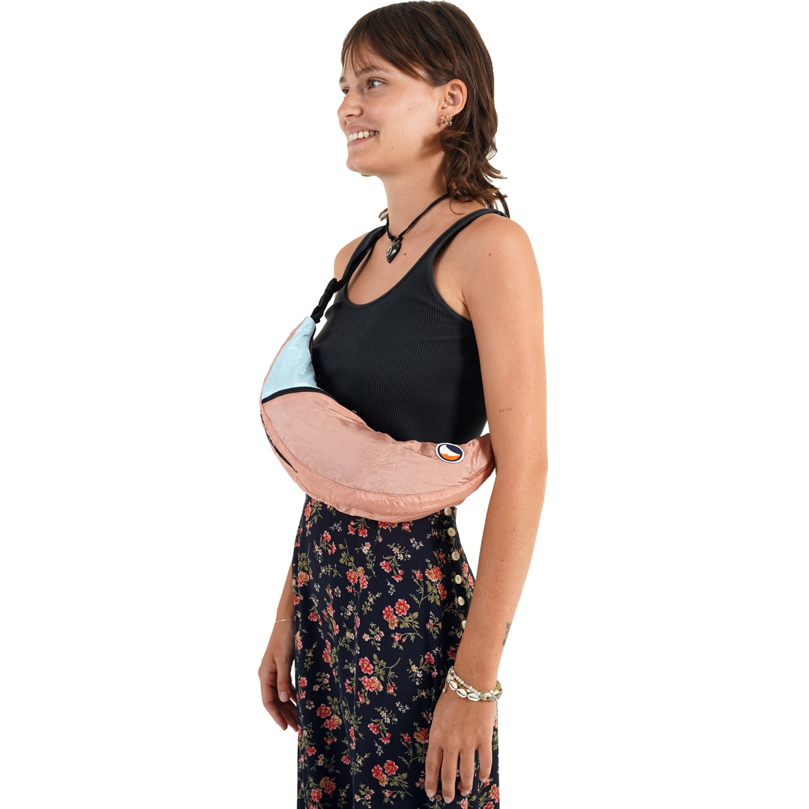 Ticket to the Moon Upcycled Sling Bag Peach / Cloud Multikleuren