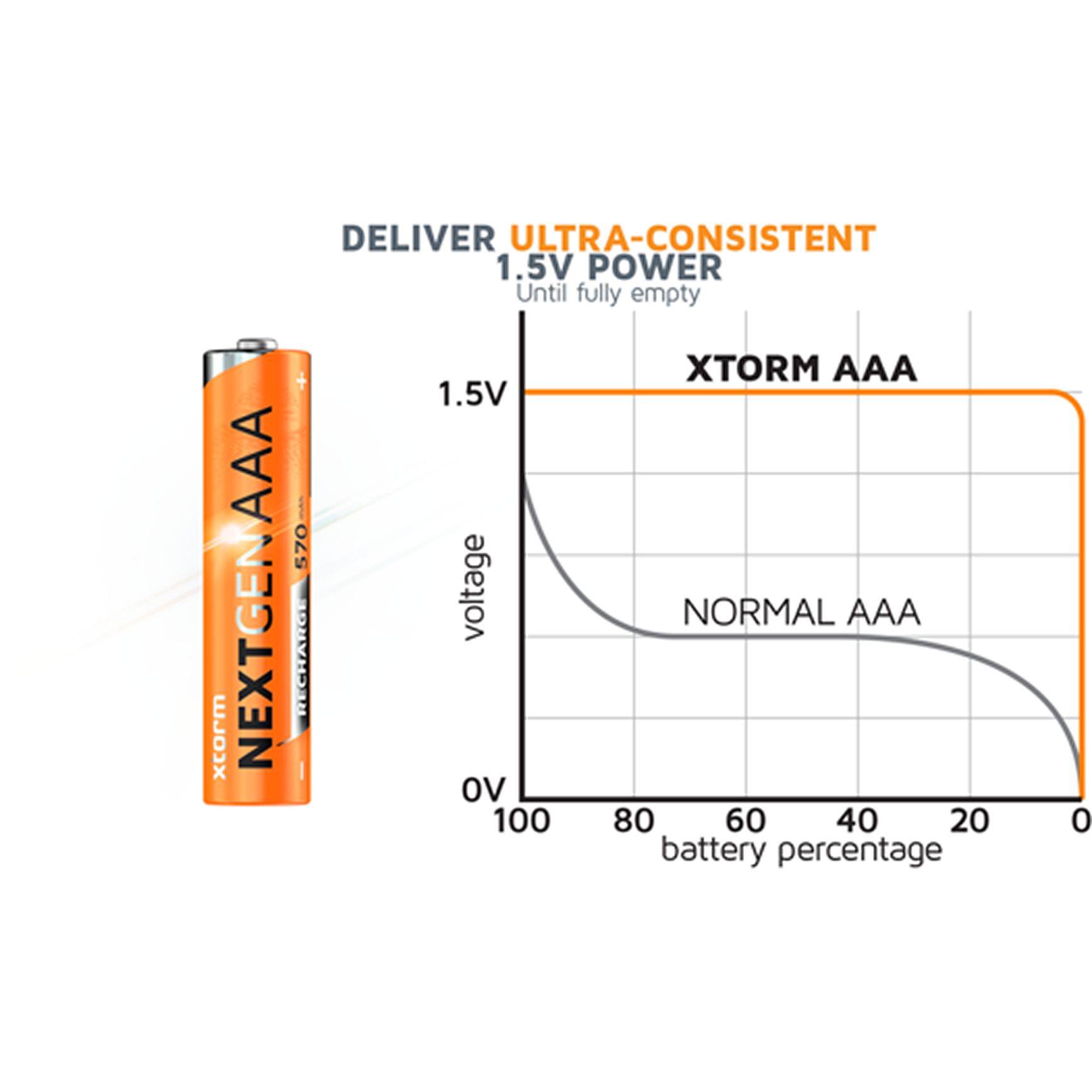 Xtorm Oplaadbare AAA Batterijen met USB-C - 4 pack Orange Oranje